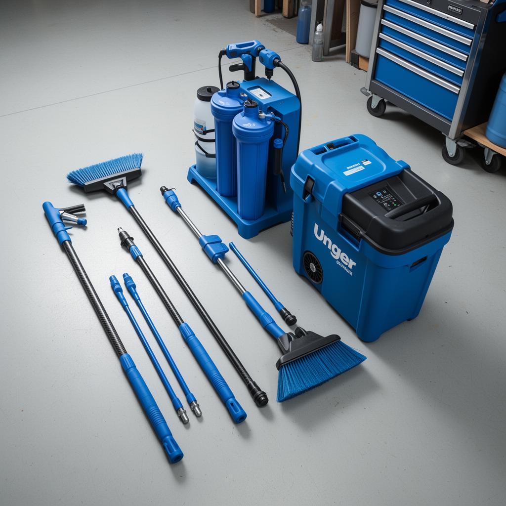 Eau pure produite par osmoseur, matériel professionnel Unger, brosses à poils doux, perche carbone et échelle 3 pans. Nous investissons dans les bons outils pour offrir un résultat à la hauteur, sans agresser les supports.